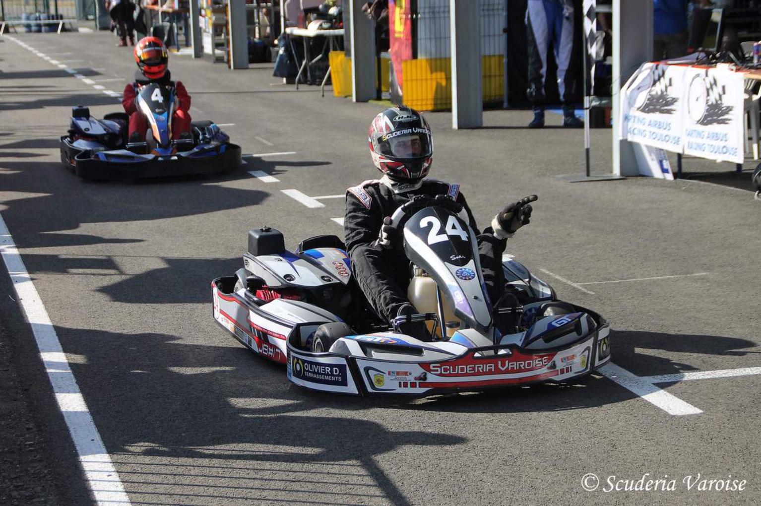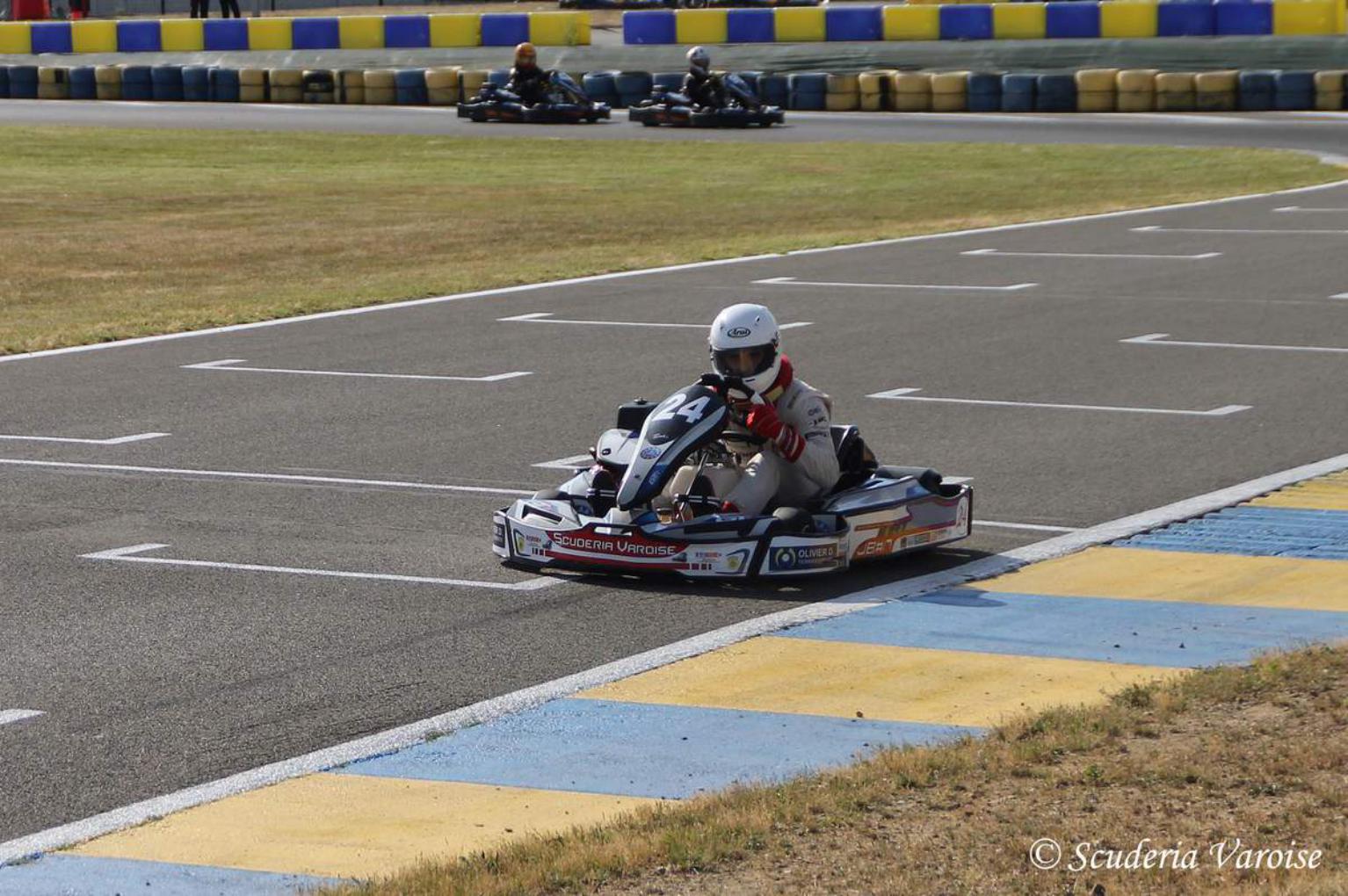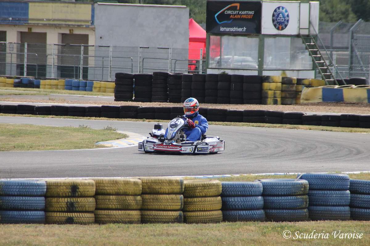 Du 23 au 25 Juin, la Scuderia Varoise voyage au Mans pour participer une 3ème fois consécutive aux 24H Open Kart. Cette année, la SV roulera sur le circuit Alain Prost. L’équipe délaisse le numéro 83 pour prendre le numéro 24 et occupe le box 17. 46 équipes sont présentes telles que, SRP Compétition avec 2 chassis, MH Performances 2 Chassis, UD Pétillants, AKCM, Belgium Racing Team 2, Portugal Racing Team ainsi que ACPH de Mathieu Bobet, Sasha Vandenitte, Loic Raymond, Adrien Iché et Jacques Jorrot. Pour la Scuderia Varoise l’équipe est composée de Mathieu Pellegrino, Rémi Eynard-Tomatis, Pierre Charrier, Tom Bianchi, Stéphane Sanchez et Kenny Robles. La journée du vendredi est composée d’une séance d’essais libres de 1H et 1H de qualifications. Pour le samedi 30min d’essais libres suivis de 1H de qualifications avant le départ de la course à 14H