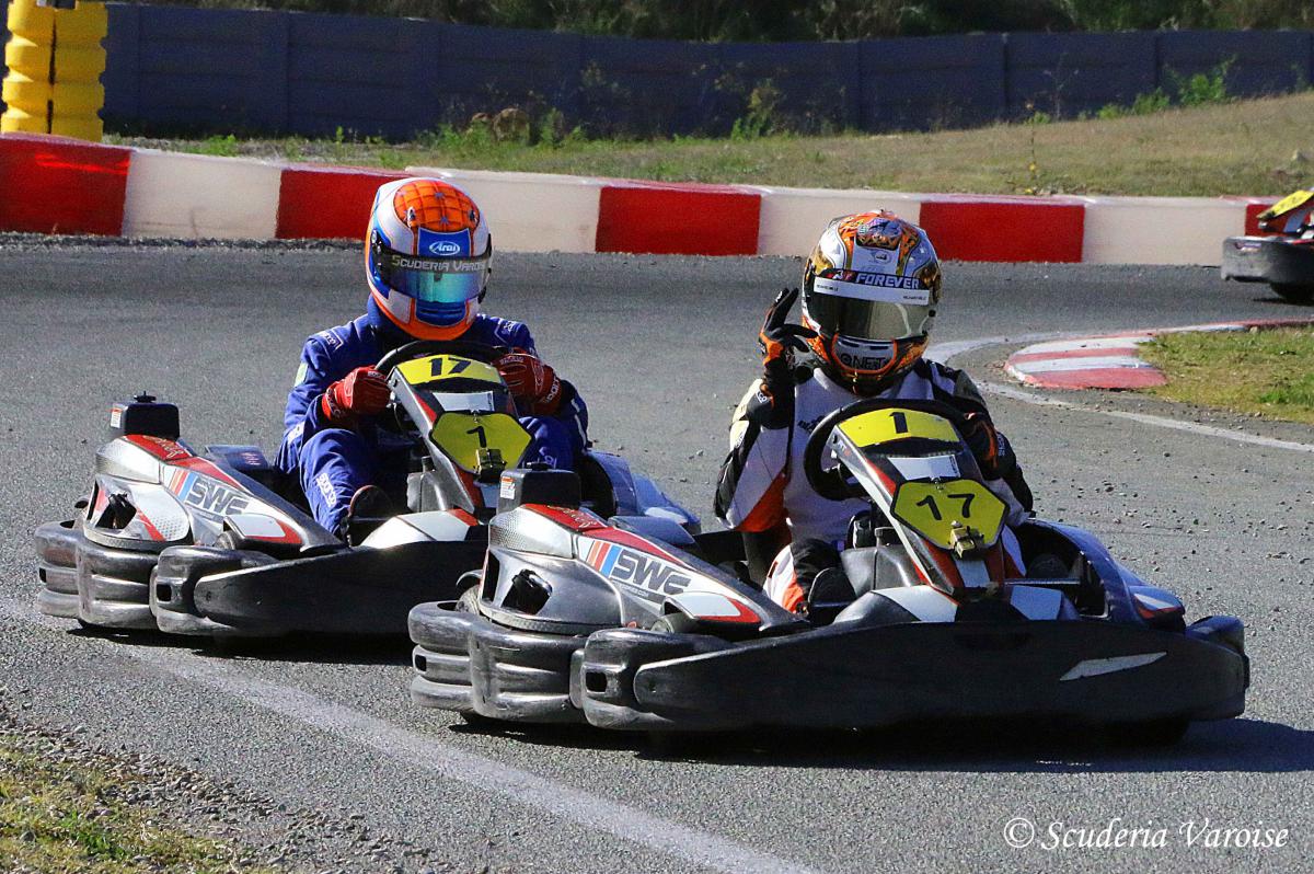 Une semaine plus tard, on retrouve la Scuderia Varoise avec 3 équipes à Brignoles, en 390cc SV1 Christophe Tardieu, Rémi Eynard-Tomatis et Mathieu Pellegrino, JB17 Stéphane & Kyllian Sanchez et Tom Bianchi en 270cc SV2, Pierre Charrier, Martin Leguillois, Paolo Vlieghe ainsi que nos 2 nouveaux pilotes Kevin Portal et Gabriel Martinez. Comme à Speedkart la semaine précédente, il y a des changements de karting à chaque relais.